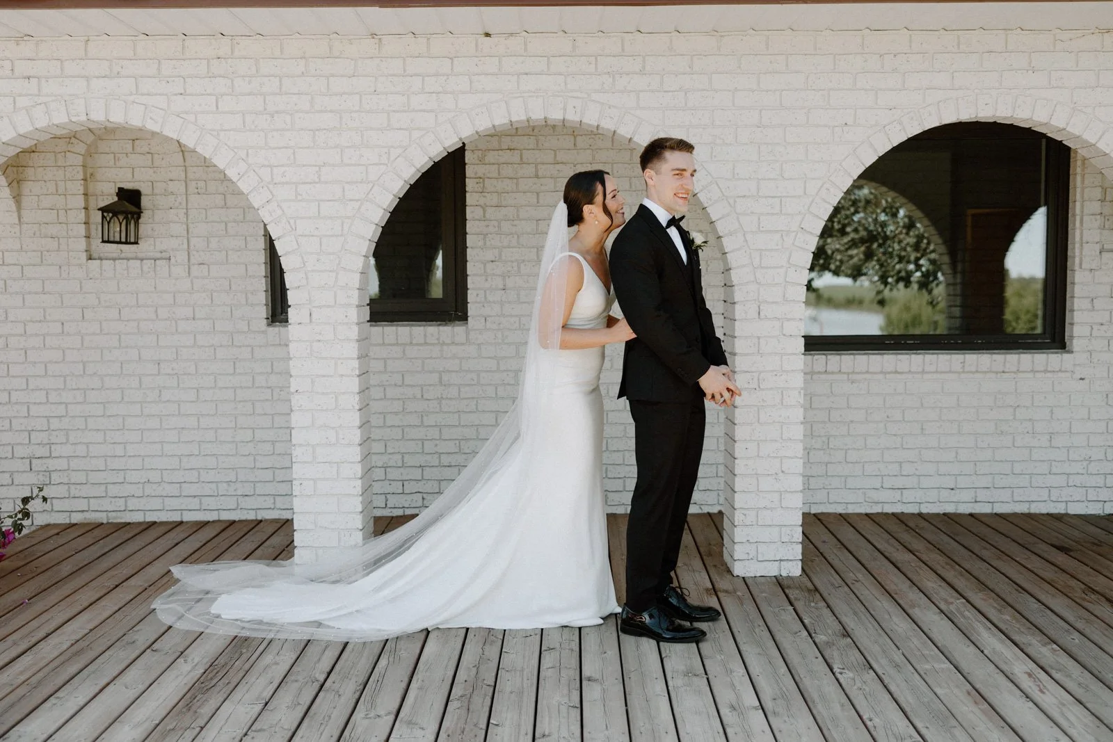 The White Poplar sits about 20 minutes north of Winnipeg on 70 acres, and the property has been designed with a lot of intention. The ceremony site overlooks a pond and fountain, which makes for a really clean, beautiful backdrop. The open air reception pavilion has a modern, minimal feel that photographs consistently well regardless of your décor choices.