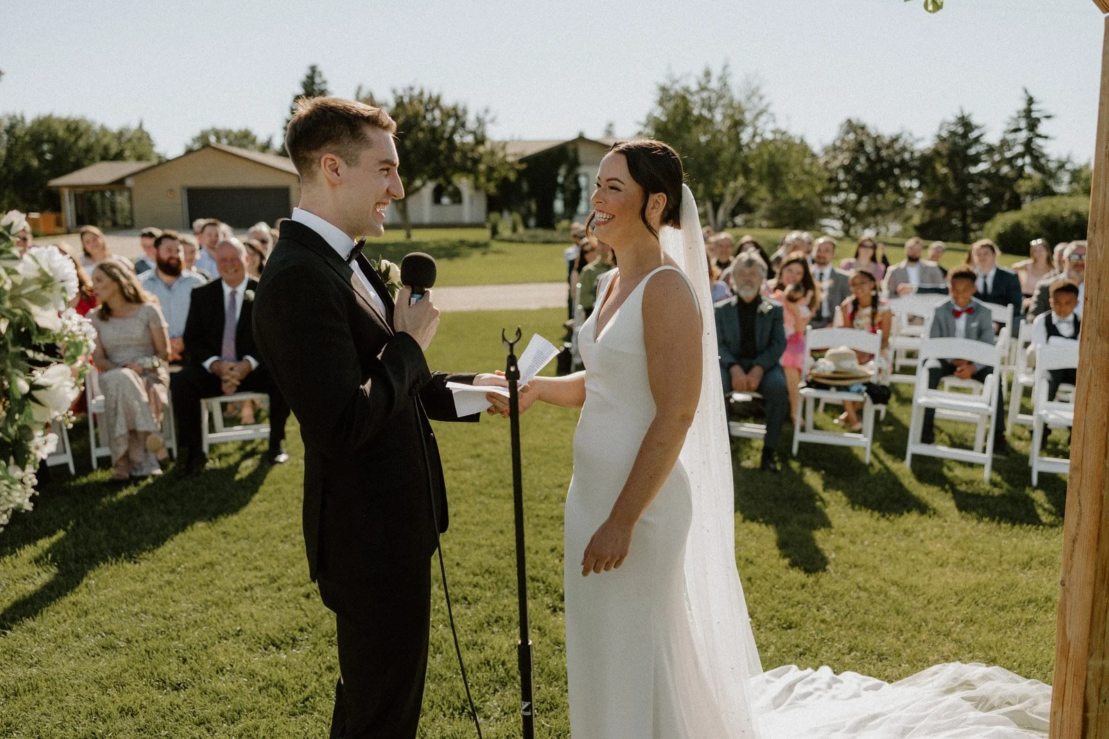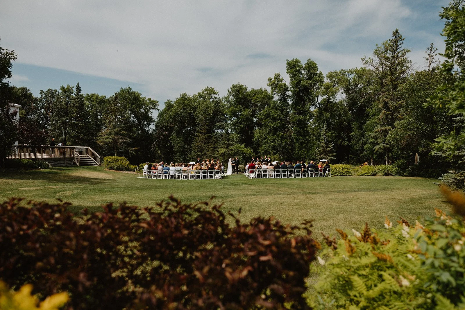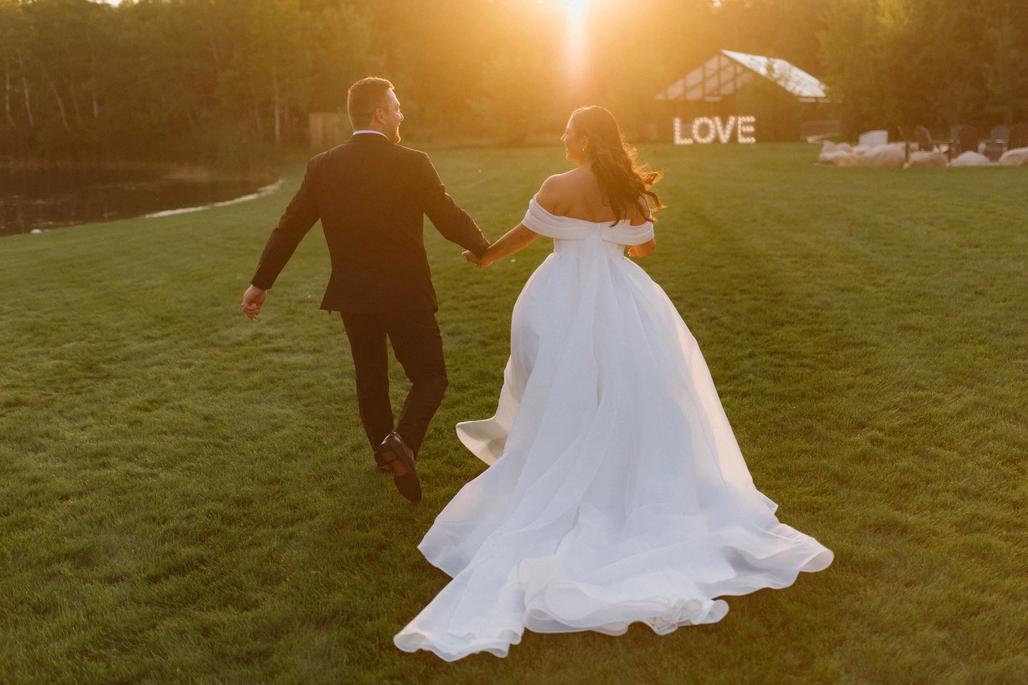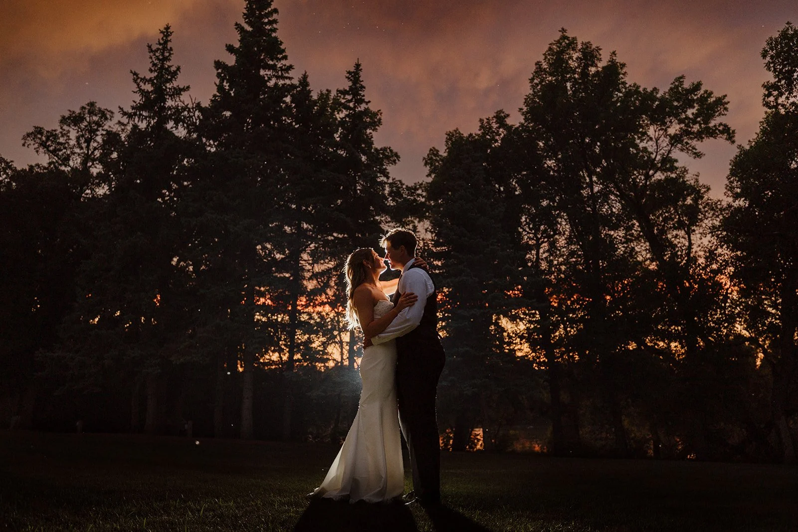 Starlit Point sits about 25 minutes south of Winnipeg. The ceremony space overlooks the Red River Valley, and on a clear evening the sky out there is genuinely something. Manitoba sunsets do a lot of the work.