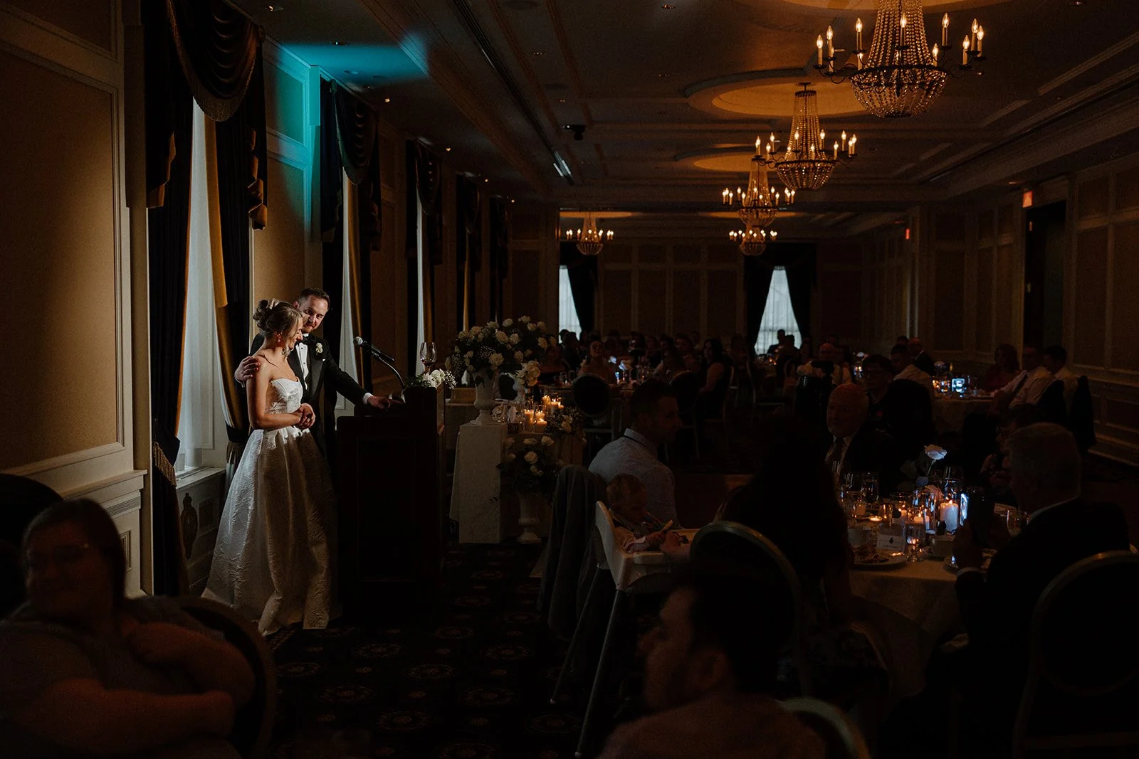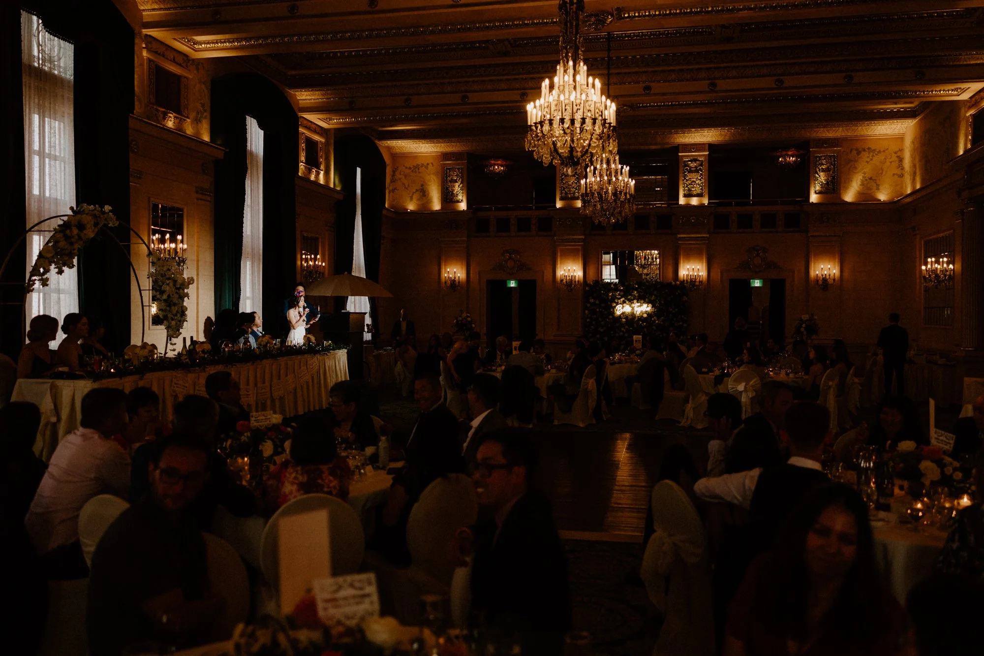 The Fort Garry is one of those venues that just has weight to it. Dark wood, high ceilings, chandeliers, grand staircases. There's a richness to the building that you don't find many places in Winnipeg, and it shows up in photos. I love shooting here because the character is already there. You're not trying to manufacture atmosphere, you're just working with what the building gives you.