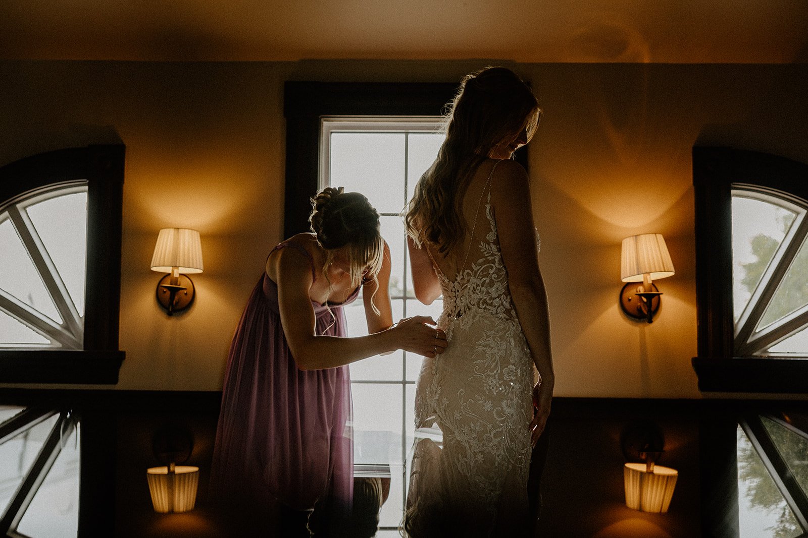 One of the things I appreciate most here is the getting ready setup. The bridal house has two separate spaces, one for the wedding party and one for the couple, on different floors, so both sides can get ready in the same building without seeing each other. That's genuinely practical and it makes the morning of so much smoother to photograph.