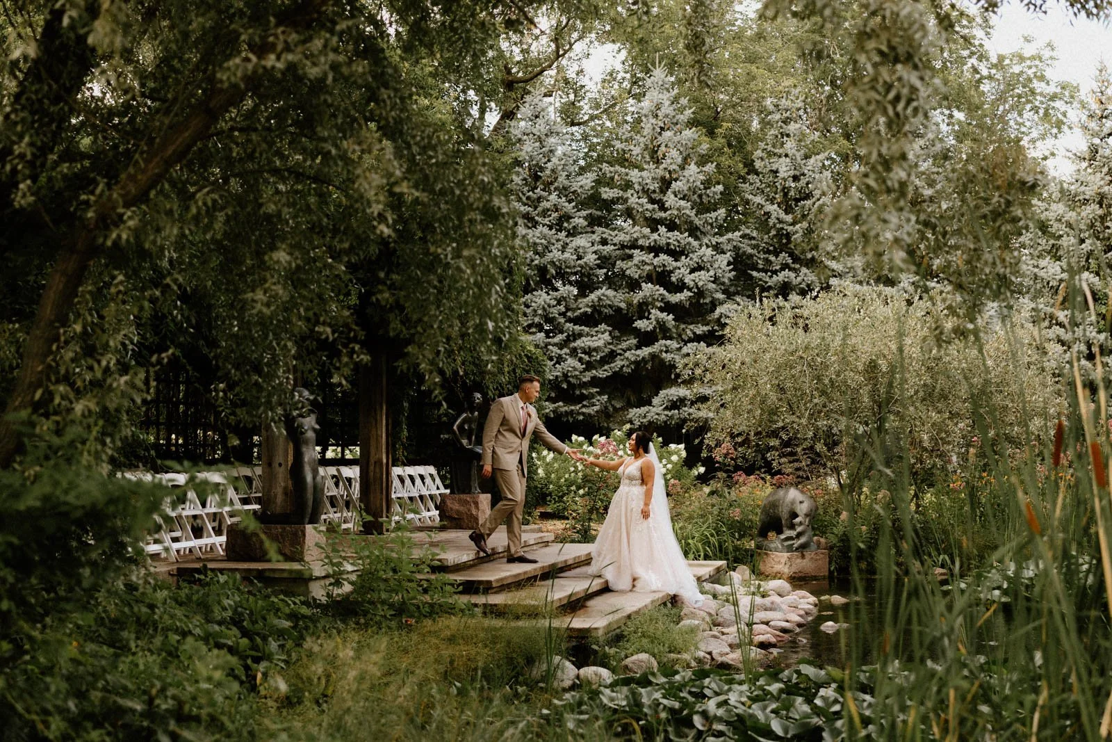 Leo Mol Sculpture Garden One of the most stunning ceremony locations in the city. Mature trees, bronze sculptures, and a ceremony site right over the pond. Couples who get married here will often use the Qualico Family Centre next door for their reception, which makes for a really seamless day within the park.